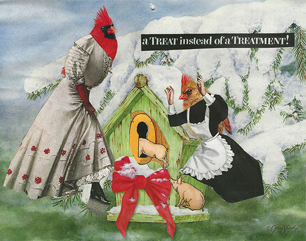 One of our hobbies here at Frames & Grooves is making collage calendar images from cheap, dollar store calendars. This year was from Boys Town and was all birds. Until we showed up. Happy Holidays for all the days. Get a treat instead of a treatment.